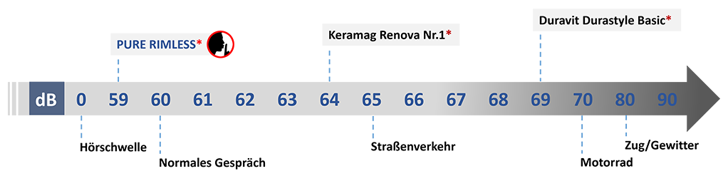 Die in Auftrag durchgeführten Geräuschpegelmessungen der Hochschule Esslingen (University of Applied Siences), belegen mit ihren Ergebnissen die flüsterleise Spülung des neuen Pure-Rimless-Wc’s eindrucksvoll.